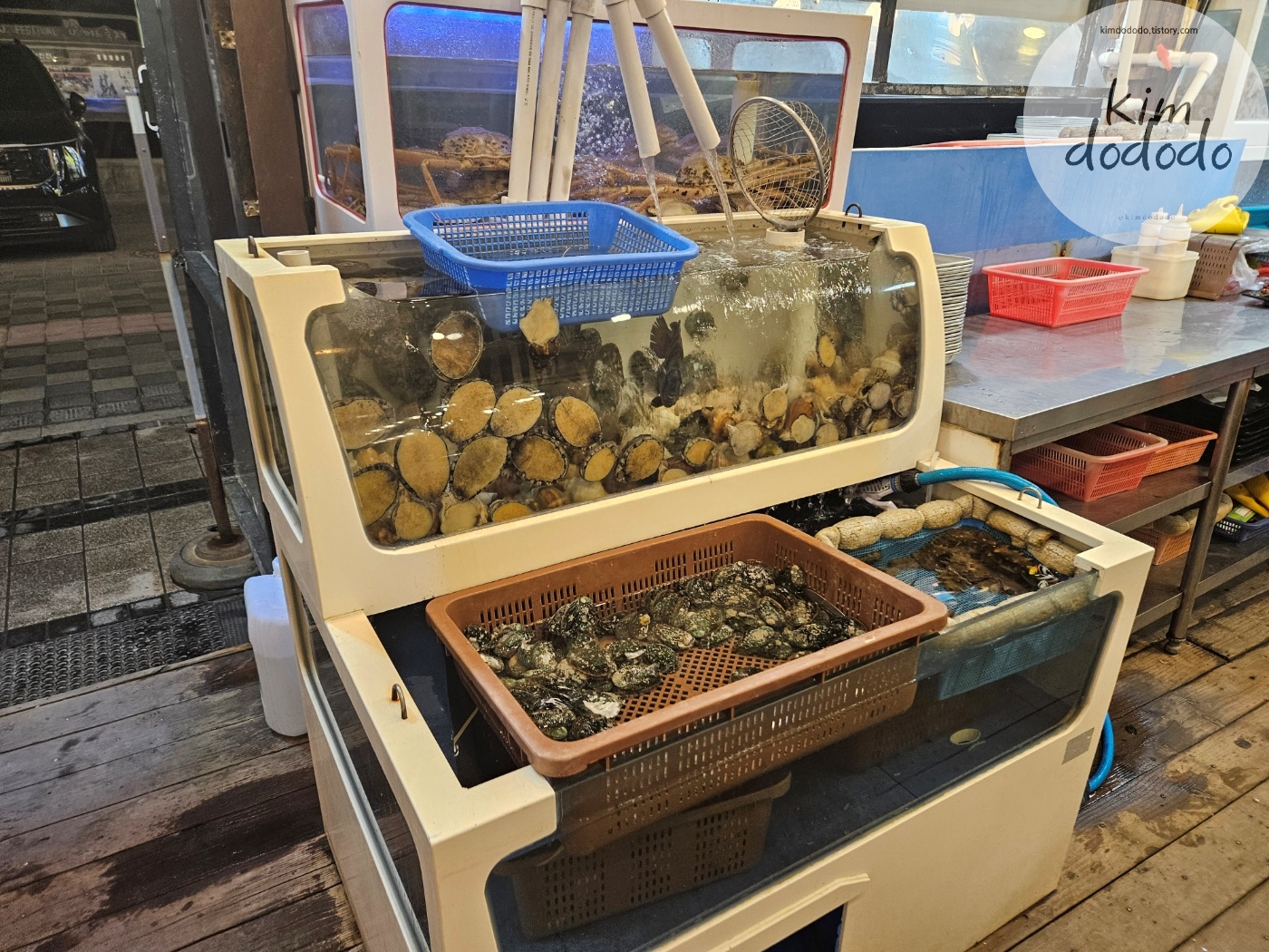 대신 수조에 조개가 많고 싱싱한 곳을 갔답니다.